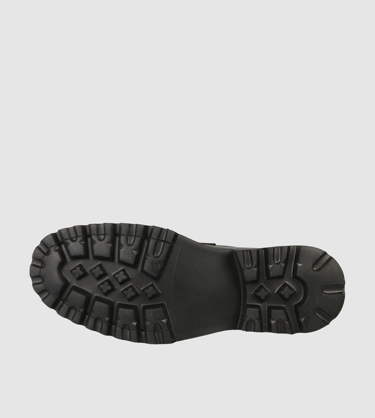 – Heavy-duty lugged rubber sole for superior traction and a bold aesthetic