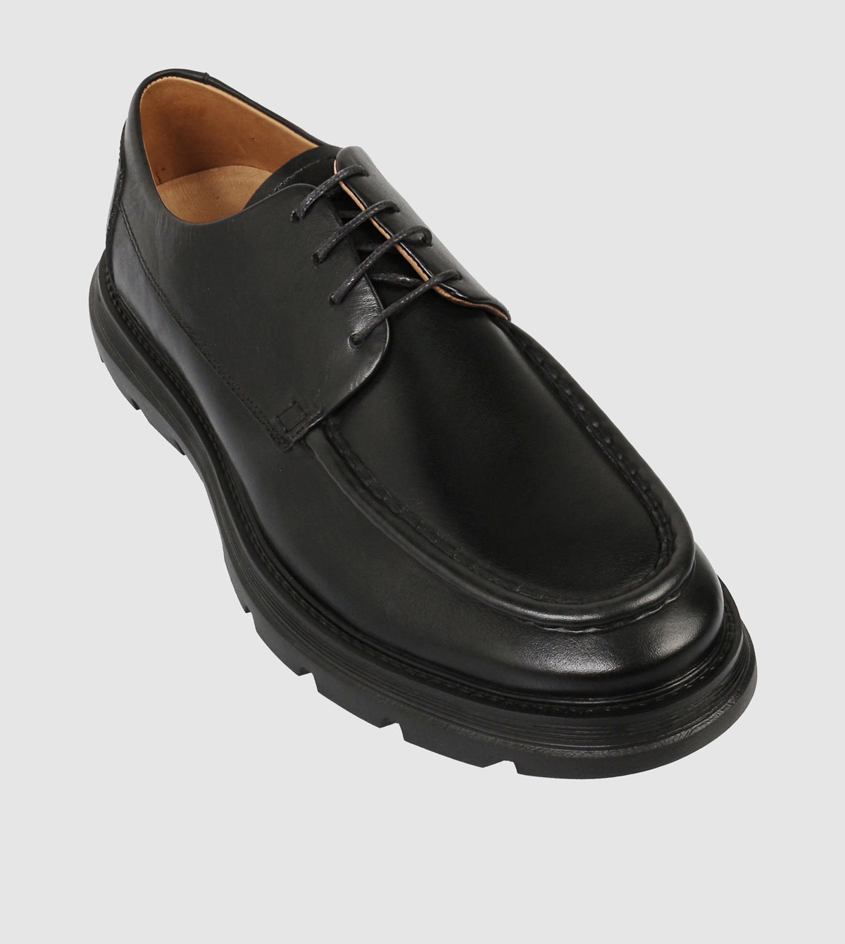 The Coltrane Casual Lace Ups offer a bold, architectural take on the traditional derby shoe, designed for those who value both substance and style. Made from premium smooth leather, these shoes feature a distinctive raised moc-toe seam and a clean four-eyelet lacing system. The standout element is the oversized, lugged rubber outsole that provides a modern, utilitarian edge while ensuring exceptional durability and grip for urban environments.